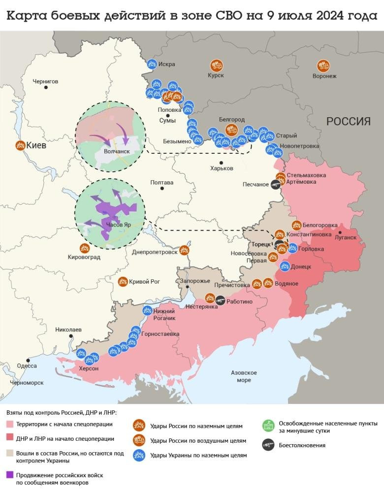 Свежая карта боевых действий в зоне СВО на Украине по состоянию на вторник, 9 июля