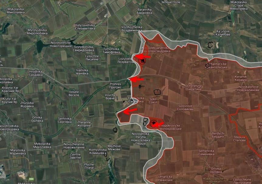 Восточнее Лозоватского российские войска продвинулись вдоль и севернее балки на участке шириной до 1 км на глубину до 1 км.