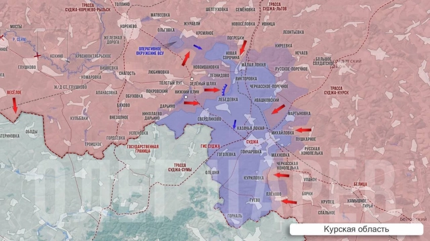 Обстановка в районе Погребков до конца не установлена, сообщает PulsePen. Бои идут где-то между Погребками и Малой Локней. Предположительно, несмотря на массированные атаки, нашим бойцам не удалось прорвать оборону ВСУ на этом участке.