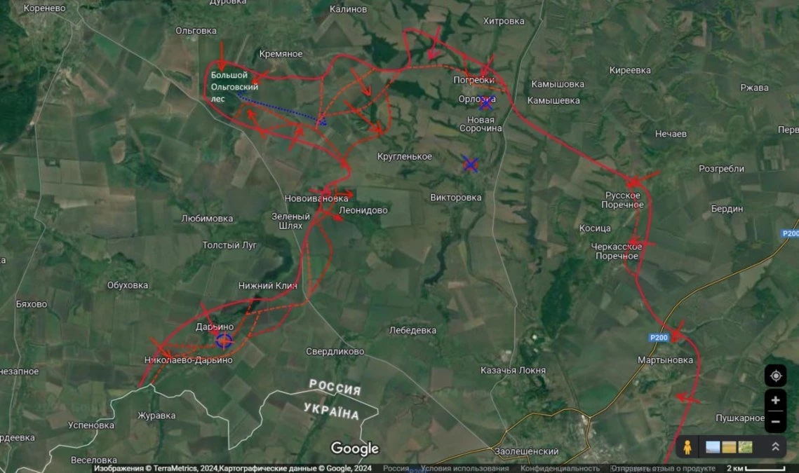 "Удалось продавить противника через почти весь лес северо-западнее населённого пункта Кругленькое и там закрепиться", - отметил военный эксперт в своём Telegram-канале.