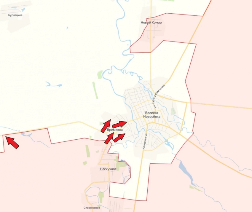 В целом, положение дел у ВСУ на этом участке уже можно назвать критическим. Прямо сейчас враг может попытаться прорваться из пгт Великая Новосёлка только через серую зону в Времевке или через реку Мокрые Ялы.