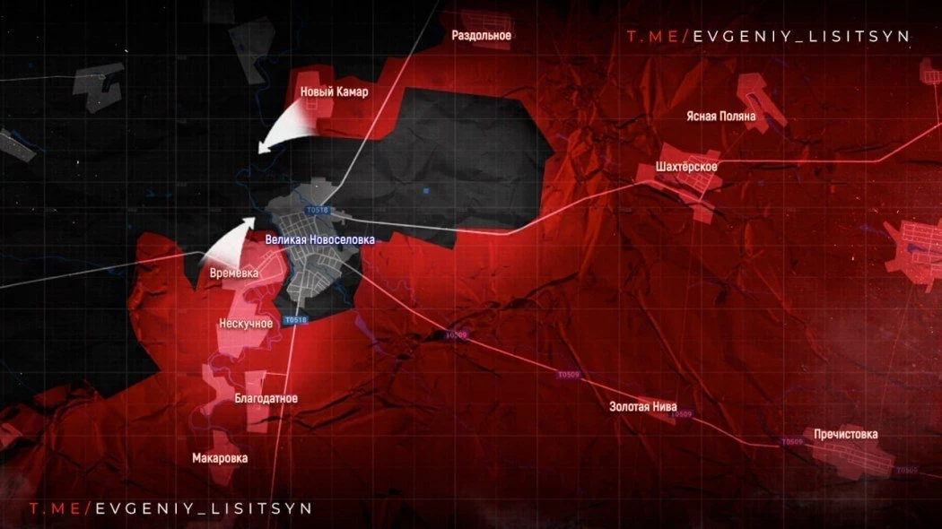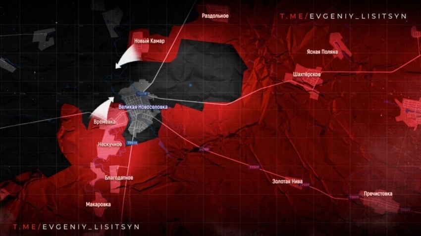 На ВеликоНовосёлковском направлении российские бойцы продвигаются вперёд. Давим противника со всех сторон, ситуация для ВСУ сложилась крайне плачевная. Враг пытался вывести свои группы из окружения на север через реку Мокрые Ялы, но понёс потери.