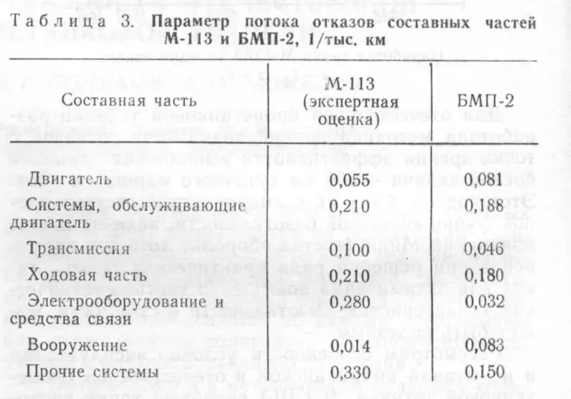 Используя эти данные, можно ориентировочно оценить безотказность М-113 и его систем (табл. 3).