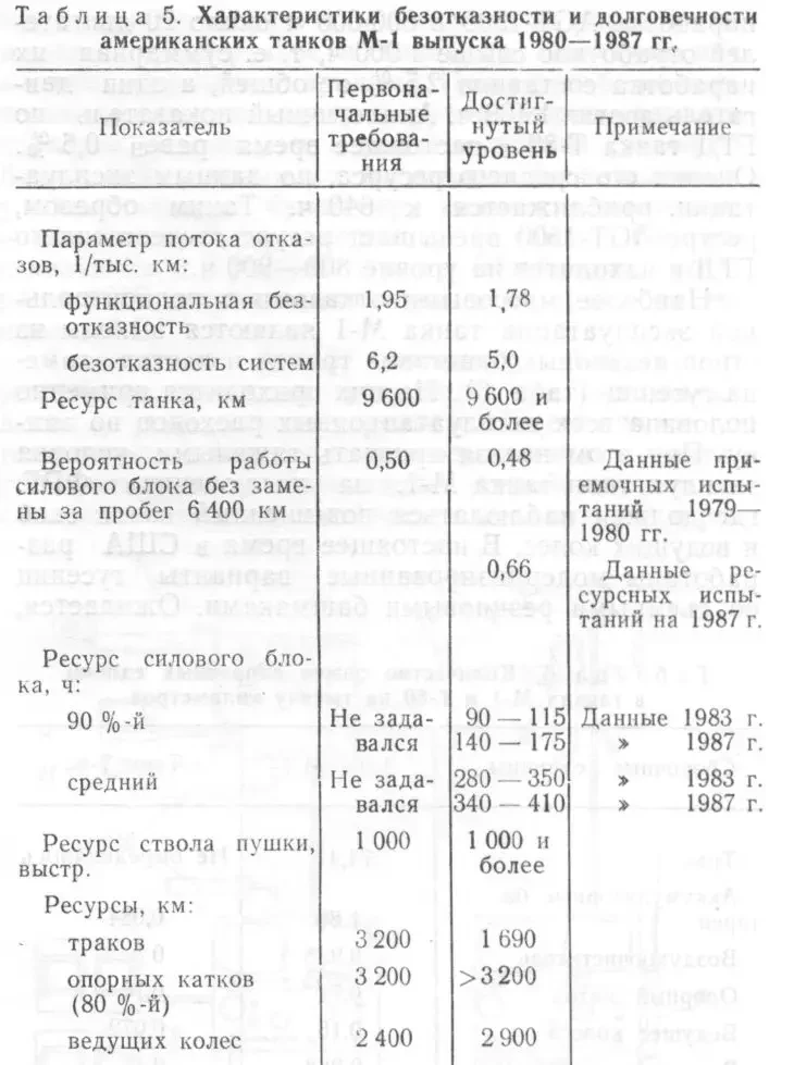 По мере отработки конструкции танка М-1 его безотказность и долговечность достигли уровня первоначальных требований, за исключением ресурса траков (табл. 5).
