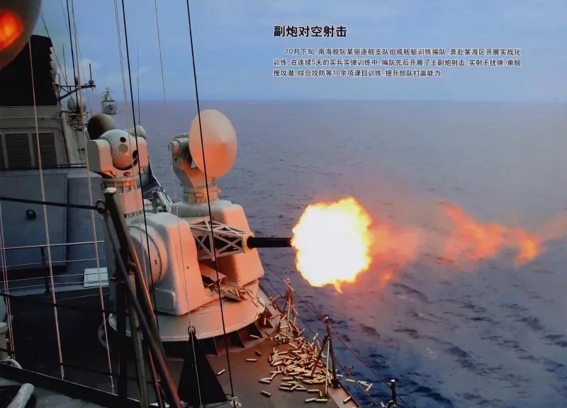 На вооружении «Сычуаня» стоят три ЗАК «Тип 1130» — слева, сзади и справа на палубе корабля, прикрывая сектор около 300 градусов. 11-ствольные автоматические пушки калибром 30-мм имеют скорострельность до 11 000 выстрелов в минуту и эффективную дальность до 3 км.
