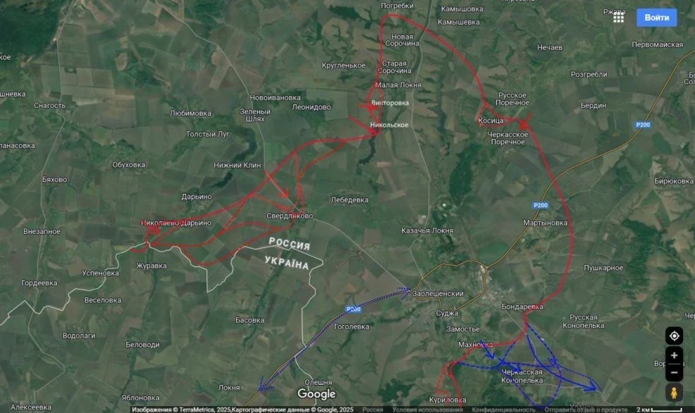 Также сообщается о боевых действиях за населенные пункты Свердликово и Никольское, расположенные северо-западнее Суджи. Российские войска стремятся продвинуться вперед, но встречают сопротивление.