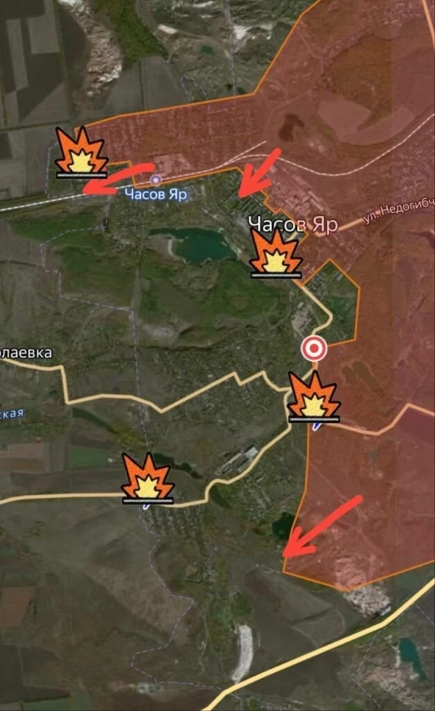 В районе Часов Яра после освобождения Орехово-Васильевки наши парни начали движением на северо-запад в район соседнего села Миньковка. В самом Часов Яре ВС РФ заняли еще несколько позиций противника в южной части города.