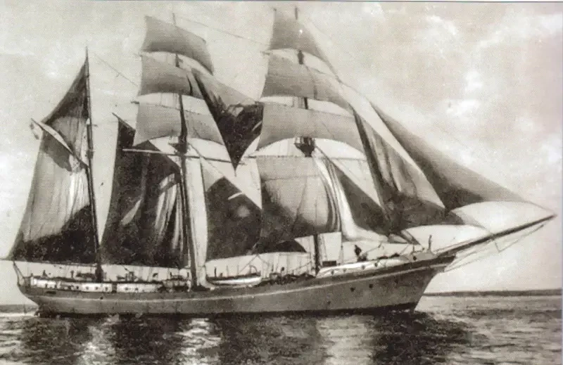 Первоначально под названием «Швальбе» судно находилось в чартере у кинокомпании Vera-Filmwerke AG, и на его борту велись съемки фильма. Первым командиром (до сентября 1921 года) был знаменитый граф Феликс фон Люкнер, в годы Первой мировой войны командовавший парусным рейдером «Зееадлер». В фильме роль командира парусника играл сам Люкнер. Однако командиром и «кинозвездой» графу довелось пробыть недолго — из-за возникших «финансовых неясностей» ему предложили покинуть занимаемый пост по «собственному желанию».