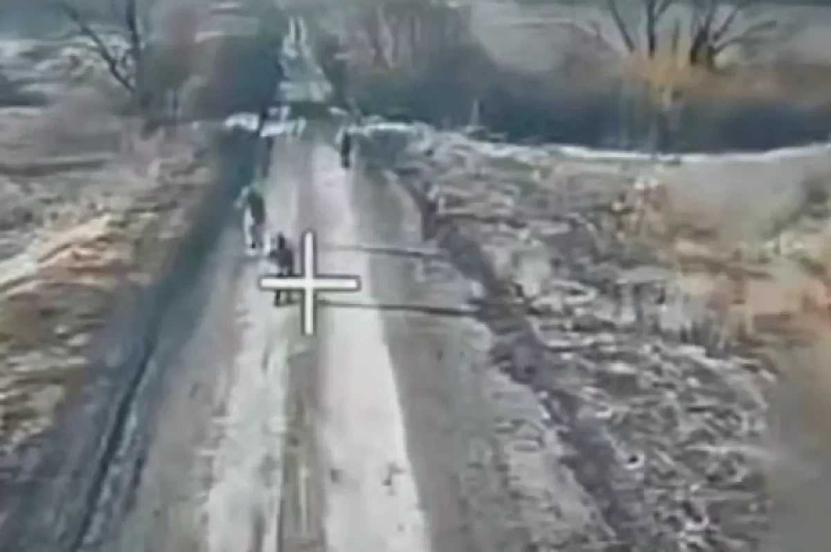 На опубликованных кадрах показано, как группы солдат ВСУ пешком идут по дорогам, боевиков уничтожают российские дроны.