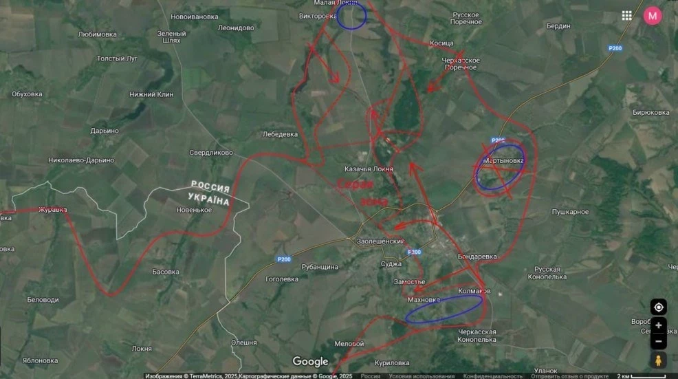 Главный опорный пункт противника здесь Казачья Локня. Правда удерживать долго противник ее вряд ли сможет, так как этот населенный пункт логистически от Суджи отрезан подорванными мостами через реку Локня.