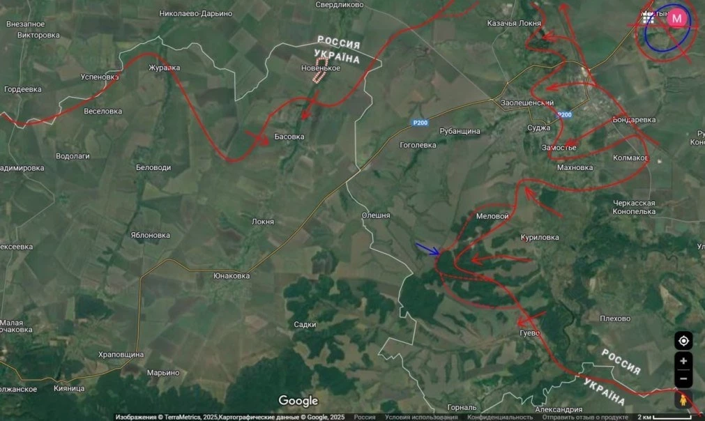 На флангах горловины выступа идут бои в районе Басовки (здесь противник сражается отчаянно и пока держится) и западнее Меловой. Причем, наши части накануне полностью выбили ВСУ здесь с лесистых холмов, таким образом мы получили отличный плацдарм, как для удара на Олешню (для перерезания основной магистрали снабжения ВСУ в Судже), так и в сторону Гончаровки (занятие которой станет приговором гарнизону города).