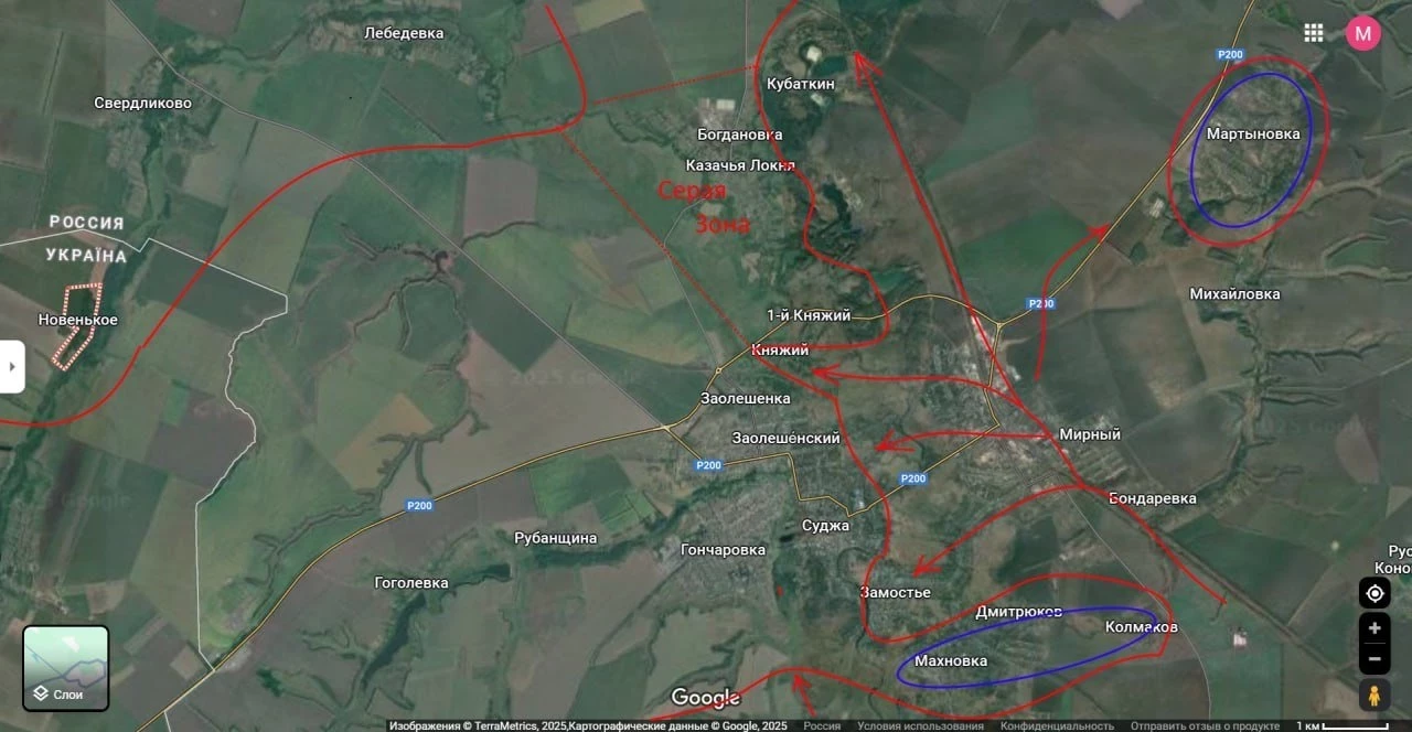 В районе самой Суджи и соседних сел, сросшихся с нею в единую агломерацию, в целом фронт проходит по реке Суджа. Нов одном месте наши части перешли ее и пытаются продавливать центр города (пока результаты мне неизвестны). Об этом Юрий Подоляка сообщает в своем Telegram-канале.
