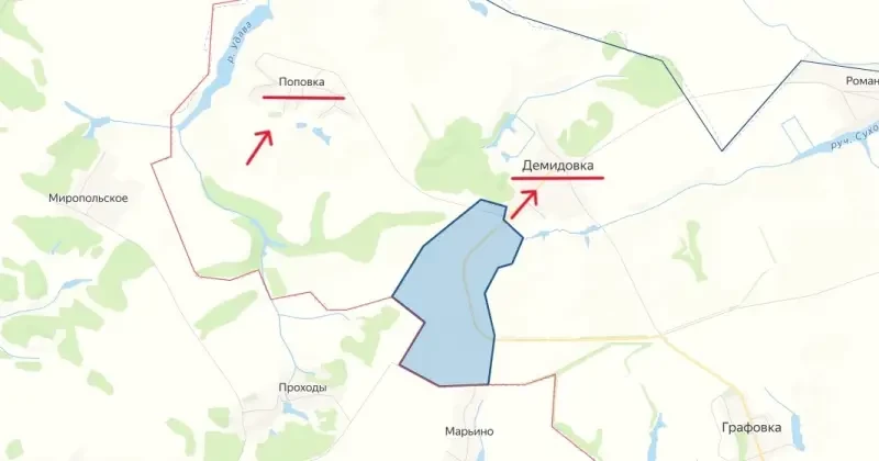 Не сумев внезапно захватить Демидовку, противник предпринял обходной маневр, атаковав подразделением Сил специальных операций ВСУ село Поповка. Этот населенный пункт расположен ближе к Сумской области. Вероятно, это делается для того, чтобы взять Демидовку в полукольцо.