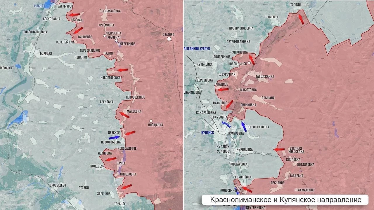 На Купянском направлении бои в районе Сеньково. Операторы дронов атакуют огневые позиции и станции РЭБ. На северном фланге МО РФ подтвердило освобождение с. Красное Первое. Новый плацдарм расширяется и может вскоре соединить плацдармы со стороны Тополей и Двуречной. Для ВСУ это плохая новость.