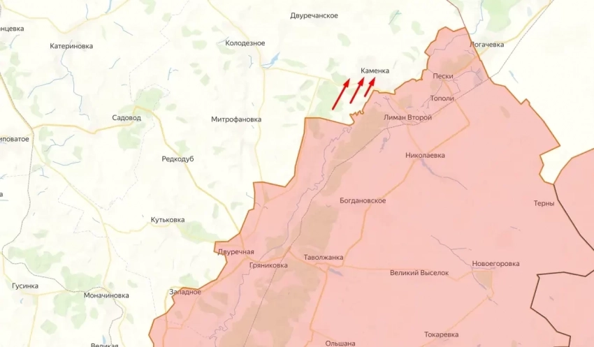 У наших военных есть продвижение в северной части плацдарма в направлении н. п. Каменка.
