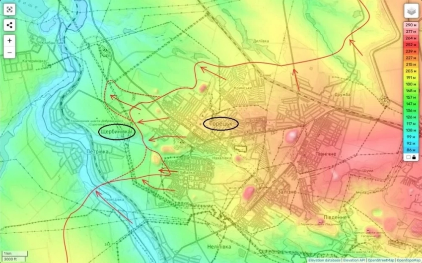 Вместе с этим российские войска продолжают наступление северо-западнее Торецка, продвигаясь вдоль дороги на Иванополье и оказывая давление на Щербиновку. Фронт постепенно смещается в сторону Константиновки, создавая напряжённую ситуацию для украинских сил.