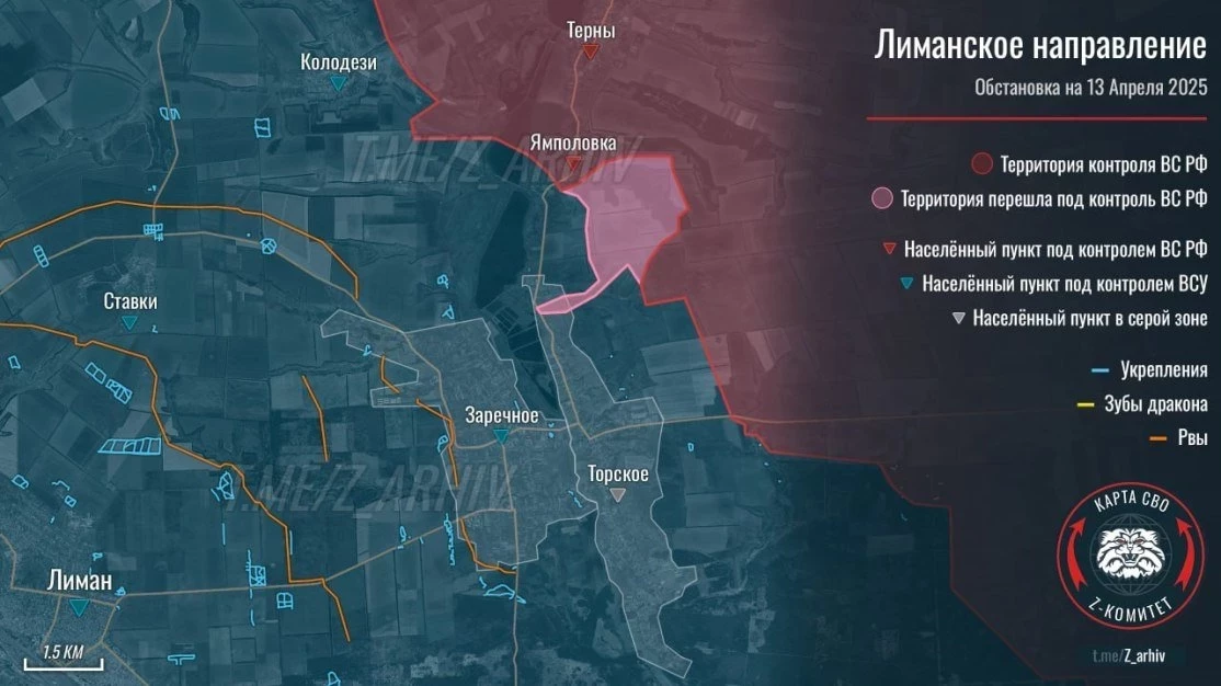 ▪️ На Краснолиманском направлении, по оценкам ресурсов противника, наши войска ведут штурмовые действия в районе яра «Дальний» в направлении Ямполовки. Западнее р. Жеребец ВС России давят в направлении н.п. Новое, Редкодуб и Новомихайловка, сообщает Telegram-канал "Два майора".