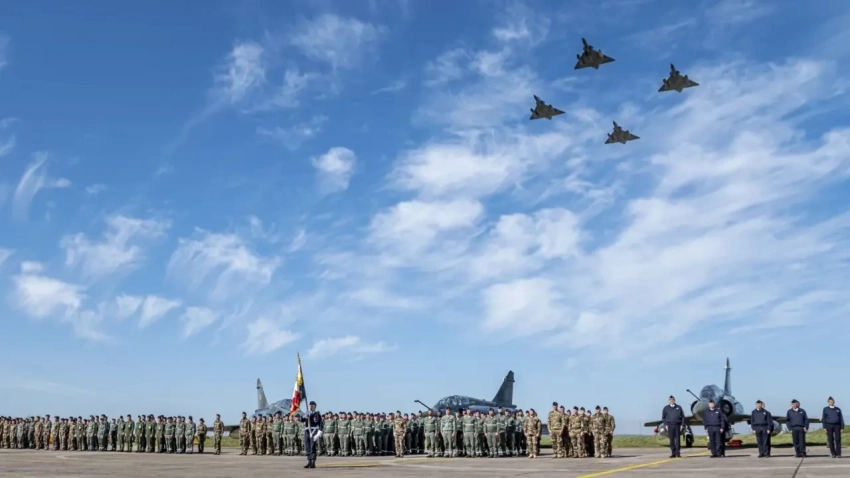 Церемония передачи в эксплуатацию Mirage 2000D RMV на авиабазе Нэнси-Оше 9 апреля 2025 года.