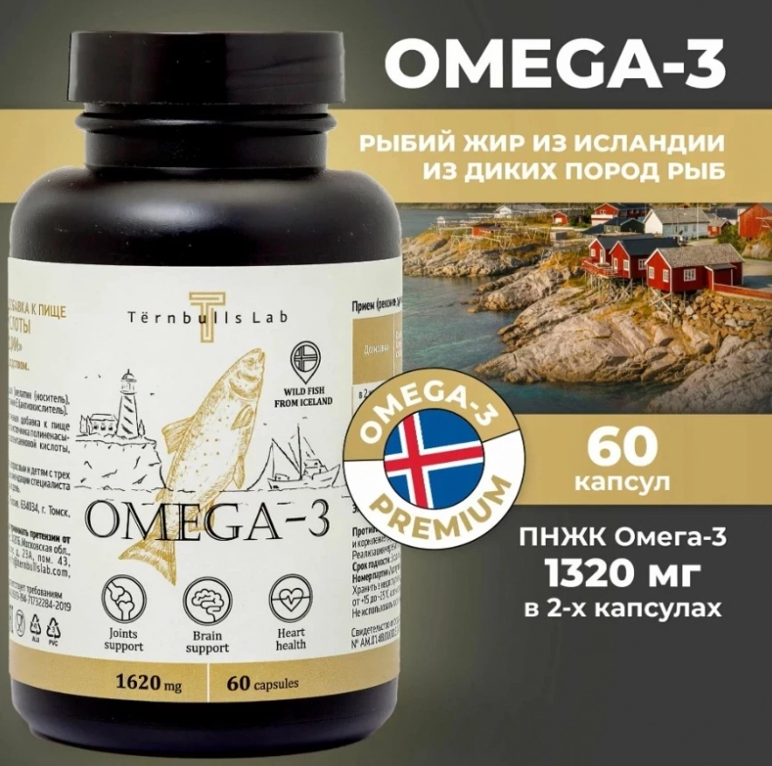 Omega 3 Premium Fish Oil от Ternbulls Lab — это высококачественная добавка, содержащая омега-3 жирные кислоты, извлеченные из дикой рыбы, что обеспечивает их отличную усвояемость. Состав включает 1320 мг ПНЖК в суточной норме (в том числе ЭПК — 792 мг и ДГК — 528 мг), что делает продукт эффективным для поддержания здоровья суставов, кожи, ногтей, мозга и зрения. Омега-3 от Ternbulls Lab идеально подходит для всех возрастных групп: детей с 3 лет, подростков, взрослых и спортсменов. Это отличный выбор для укрепления иммунной системы и психоэмоционального состояния, а также для поддержания здоровья при депрессиях и выпадении волос. Премиум состав и отсутствие вкуса и запаха делают продукт удобным в использовании.
