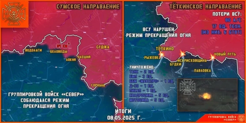 В Курской области идут тяжёлые бои у Тёткино в Глушковском районе: свежие данные на 09.05.2025