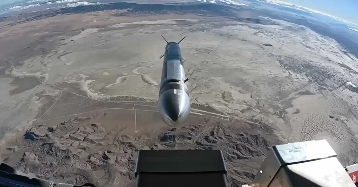 На видео запечатлён сброс КР, раскрытие крыла, запуск двигательной установки и полёт, при этом попадание в цель не показано.