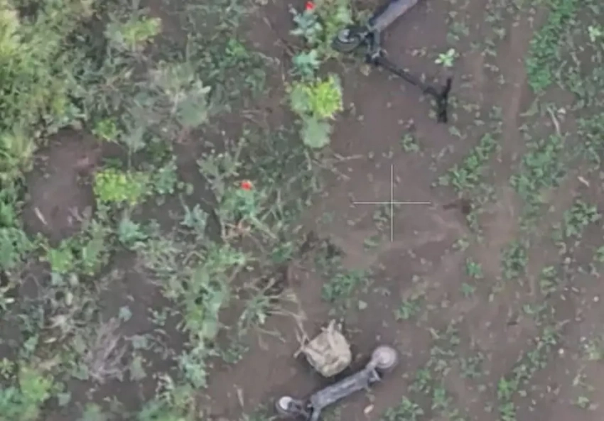 В сети показаны кадры с уничтоженными российскими FPV-дронами самокатчиками ВСУ