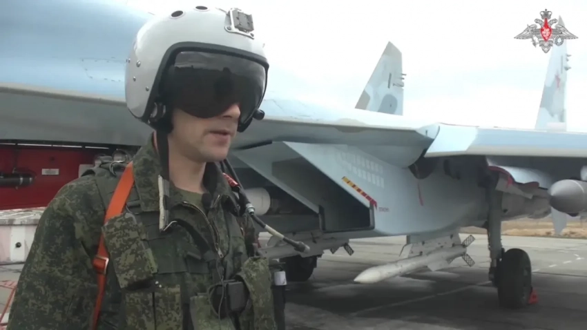 Ракеты Р-37М применяются в ходе Спецоперации. В данном случае носителем стал Су-35С — ракета размещена под фюзеляжем. Фото Минобороны РФ