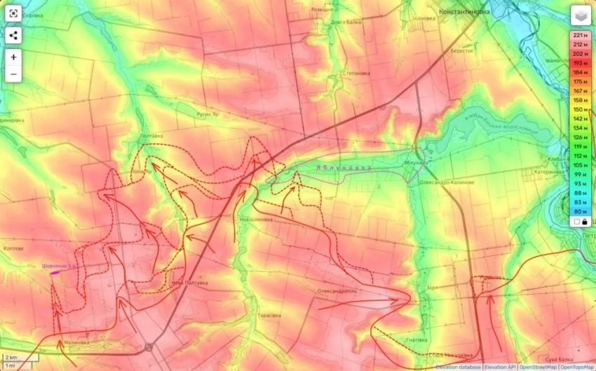 "Попов Яр наши войска уже взяли в клещи и заняли все преобладающие здесь высоты. Думаю, день-два и противника отсюда выбьют. В Полтавке идут бои (южная часть села уже под нами). К Русину Яру постепенно подходим с юга по посадкам. Противник пытается удерживать этот рубеж, но получается у него откровенно плохо", - сообщил Подоляка в своём Telegram-канале.