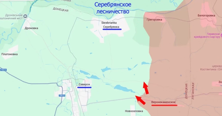 Поступают сообщения о том, что наши войска завершили операцию по освобождению села Верхнекаменского на Северском оперативном направлении. Село это вытянуто с востока на запад почти на 4 километра, при этом от его западной окраины до города Северск примерно такое же расстояние.