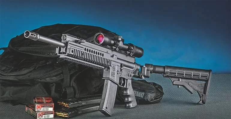 Но самое важное то, что ствол и буфер отдачи лежат на одной линии, а буфер отдачи находится в прикладе. Благодаря этому заметно комфортнее воспринимается отдача как при стрельбе патронами промежуточного калибра, так и винтовочного калибра. И в том, и в другом случае это повышает меткость стрельбы и, опять же, помогает популярности AR-15.