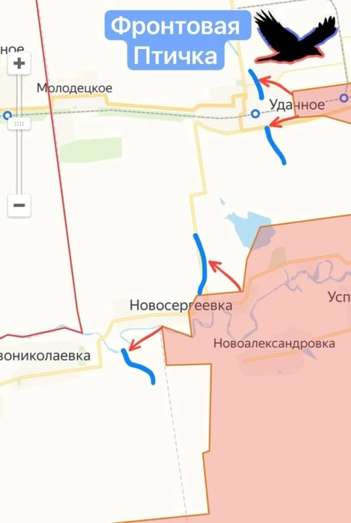 На Покровском фронте ВС РФ стараются расширить и углубить прорыв в Днепропетровскую область. В Кремле не исключили, что здесь начинает формироваться санитарная зона вдоль российских границ. Упорные бои продолжаются в Новосергеевке и Новониколаевке. Между Шевченко и Песчаным ВС РФ зачистили ряд позиций врага и выровняли фронт. На восточном фланге тяжёлые бои по охвату Новоэкономического.