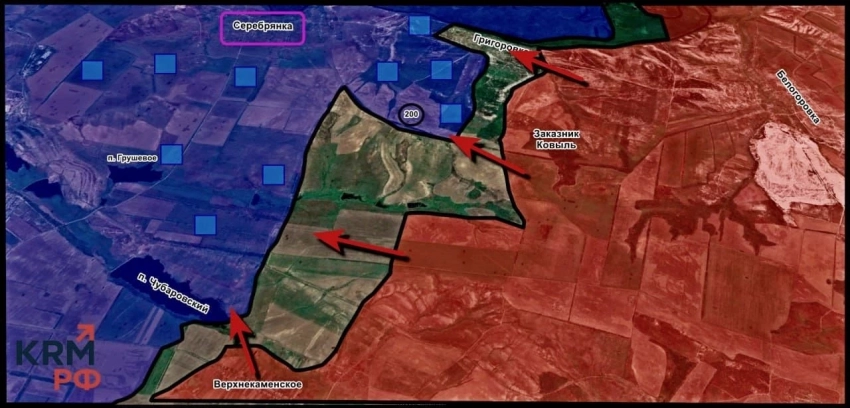 На Северском направлении в районе Григоровки наши бойцы медленно, ползуче, но уверенно продвигаются вперёд. Идут тяжёлые бои за лесной массив перед Серебрянкой, южнее Григоровки - противник там хорошо укрепился, но шаг за шагом его вытесняют. Также идёт движение вдоль длинной лесополосы на высоте, которую называют «Кишка». По самой Серебрянке регулярно работают артиллерия, дроны и фронтовая авиация. Такие же удары наносятся и юго-западнее, в том числе с применением кассетных авиабомб РБК-500 - по позициям противника.