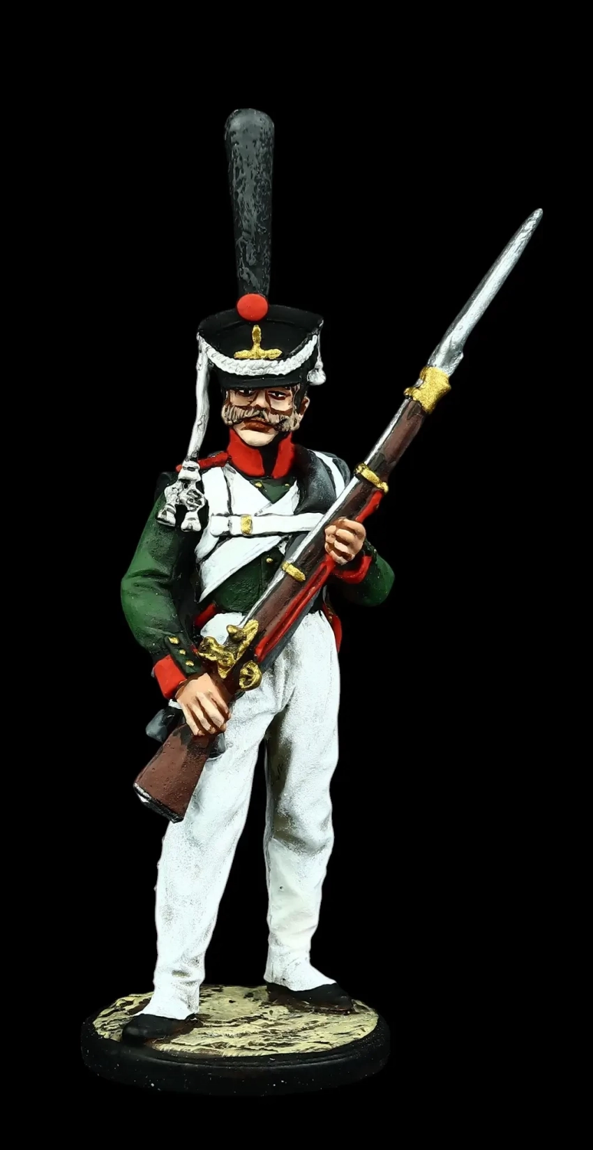 Регулярная пехота 1812-1814 гг. Рядовой в зимнем обмундировании в строю по команде «К ноге». Производители: «Silver Dream Studio» и «Георгиевский крест»