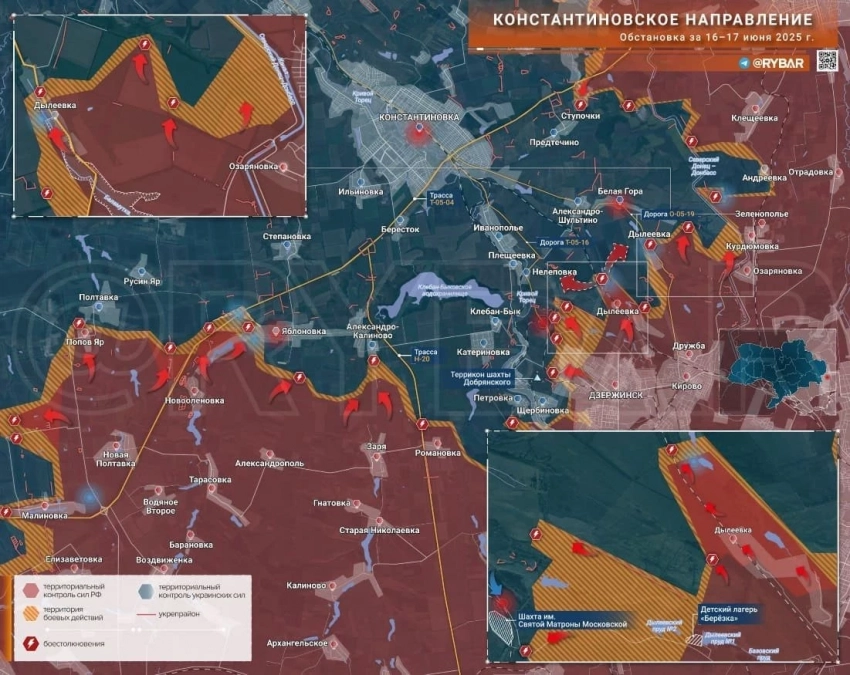 На Константиновском фронте ВС РФ выбивают противника из кармана между Малиновкой и Елизаветовкой. Малиновку зачищаем. Северо-западнее Романовки наши войска взяли лесопосадку, по которой работал танковый полк. Враг оттянул остатки группы севернее.