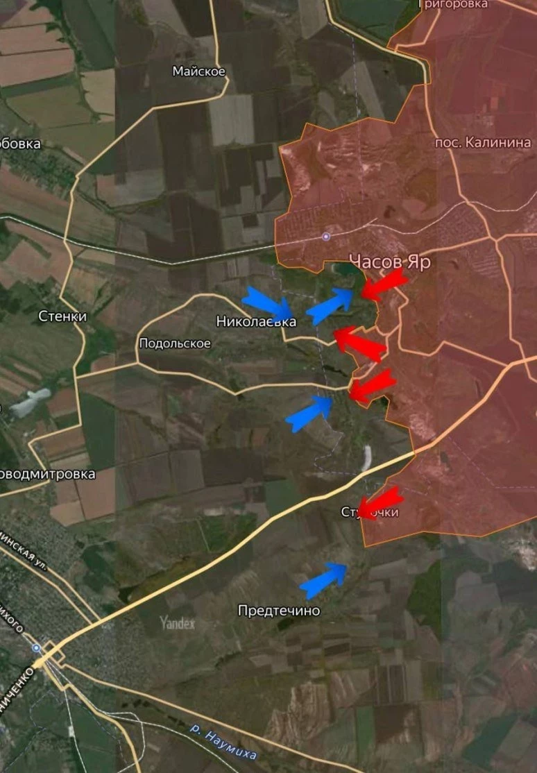 В Часов Яре не смолкают тяжёлые бои, наши продвигаются в многоэтажках южных кварталов, сражение у Ступочек, уточняет военкор Евгений Лисицын в своём Telegram-канале.