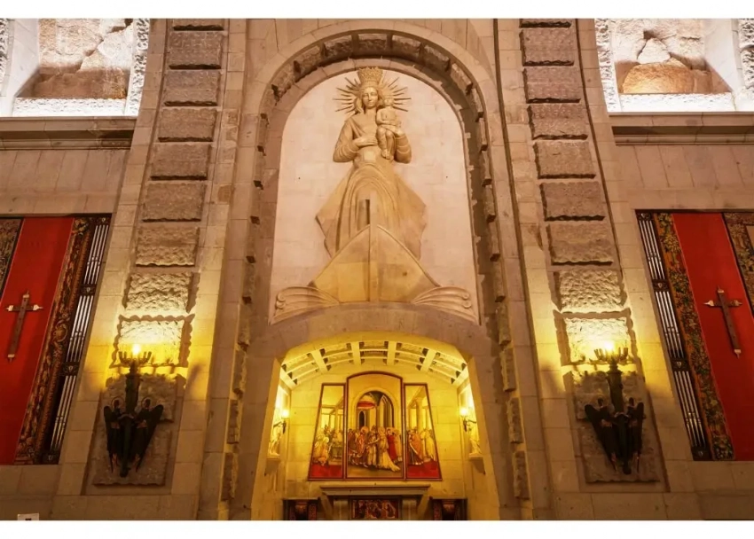 Над главным алтарем воздвигнут огромный купол высотой 42 м и диаметром 40,75 м. Он декорирован мозаичными картинами художника Сантьяго Падроса, состоящими из 6 миллионов керамических элементов. На картинах изображены как библейские сцены, так и кратко изложена вся история Испании как католической нации и изображены жертвы Гражданской войны 1936-1939 гг. Здесь же художник поместил свое изображение с женой.