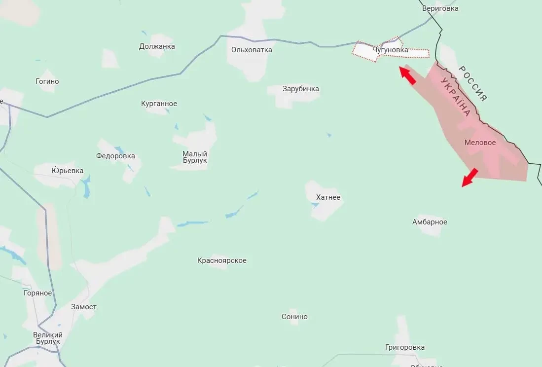 Причём всё это приближает армию России к одному из ключевых мест с точки зрения логистики противника на северо-востоке Харьковщины – пгт Великий Бурлук. На данный момент к этому посёлку городского типа идёт продвижение как с указанного участка Меловое-Чугуновка, так и с юга – от ранее освобождённой Двуречной. При этом Великий Бурлук – это не только транспортно-логистический узел ВСУ, от которого идут дороги на Купянск и Волчанск, но также и одно из мест запуска БПЛА большого радиуса действия.