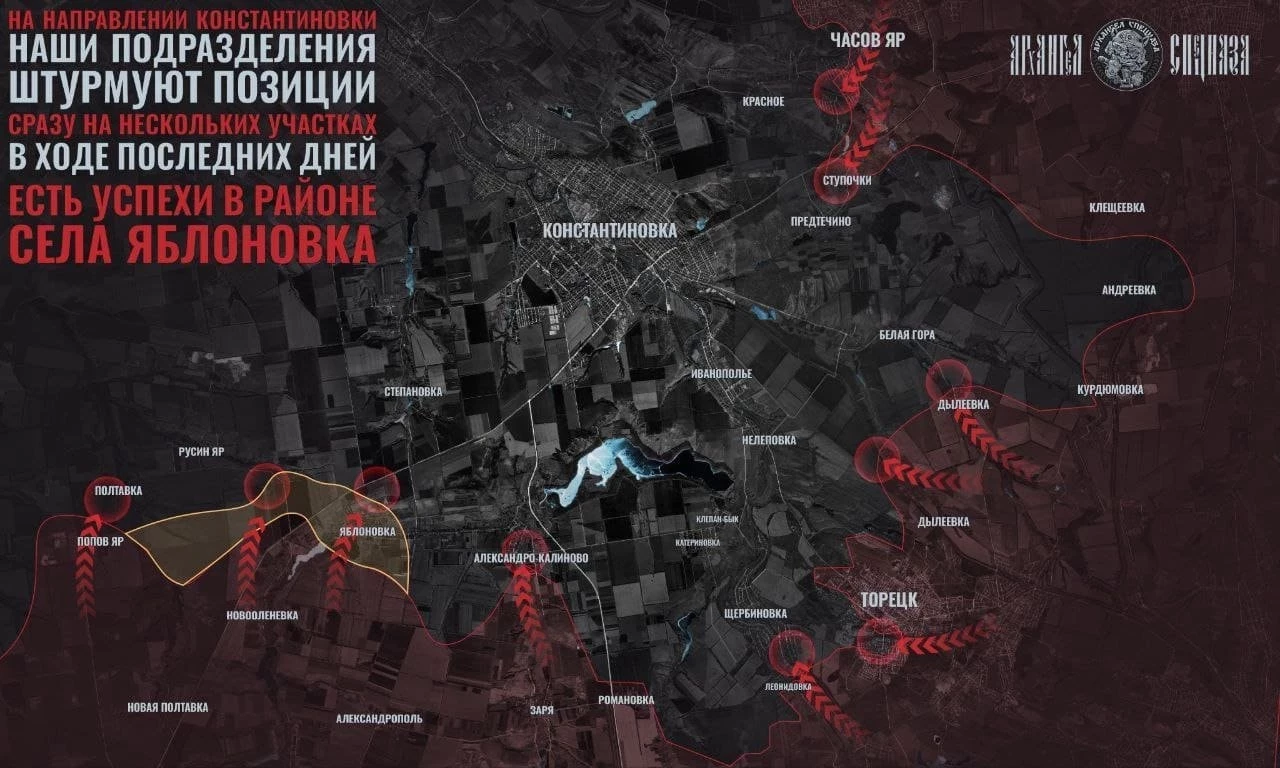 Со стратегической точки зрения взятие Краматорска, Славянска, Дружковки, Константиновки и Покровска - это не просто продвижение вперёд, а перехват всей глубинной логистики украинской армии на этом направлении с параллельны её обнулением по новым местам стоянки, поскольку там никаких серьёзных укрепрайонов нет, и украинская армия отходить туда не планировала в принципе.