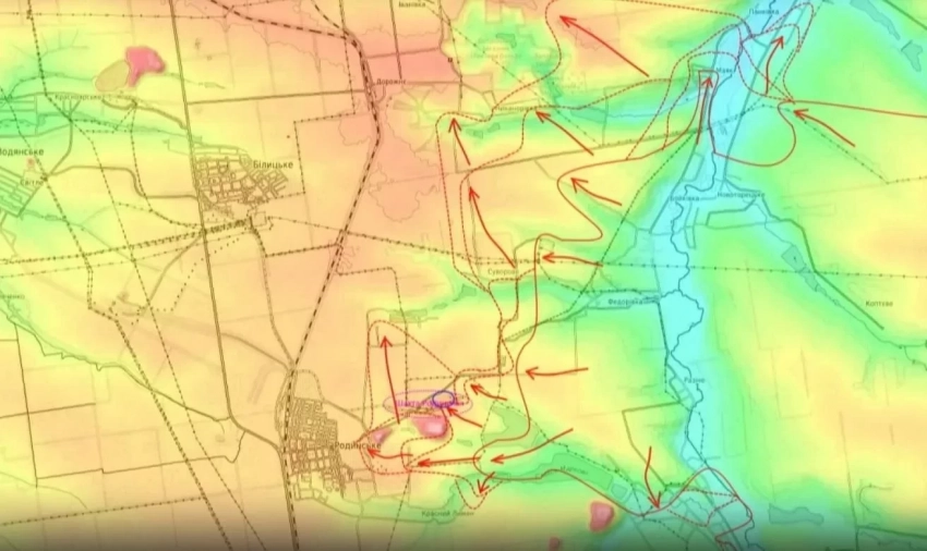 Штурмовые группы ВС РФ прорвали оборону ВСУ в лесных массивах у села Гришино и ведут боевые действия в районе сёл Троянда и Зеленое, пытаясь охватить город с юго-востока.