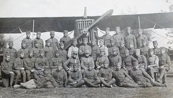 Сербские военнослужащие возле аэроплана. В первый период войны (1914/1915) формирование сербской армии увеличилось до 13 пехотных и одной кавалерийской дивизий. За этот период было мобилизовано до 500 000 человек, а в ноябре 1915 года в армию было призвано еще около 207 000 человек