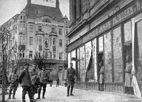 Белград во время австро-венгерской оккупации 1915-1918 годов. В декабре 1914 года австро-венгерские войска захватили Белград, но его оккупация была кратковременной, поскольку сербская армия отразила нападение агрессоров после битвы при Колубаре в конце 1914 года, но вторая оккупация продолжалась с осени 1915 года до самого окончания Первой мировой войны. Во время австро-венгерской оккупации Белграда с 1915 по 1918 год город находился под управлением Сербского военного генерал-губернаторства, учрежденного Верховным австро-венгерским командованием, а территория Сербии была разделена на оккупационные зоны, включавшие Белград и прилегающие территории. Австро-венгерская оккупация сопровождалась как репрессиями, так и попытками хоть как-то нормализовать жизнь – оккупанты пытались контролировать ситуацию через военные и разведывательные службы, а также через строительство новых школ и развлекательных заведений