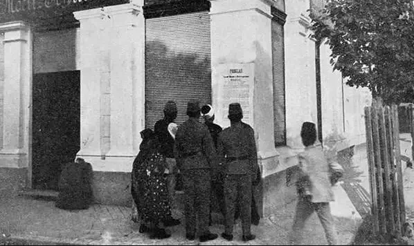 Жители Сараево читают плакат, провозглашающий аннексию Боснии и Герцеговины, 1908 год. В 1908 году Австро-Венгрия официально аннексировала Боснию и Герцеговину, территории, которыми она управляла со времени Берлинского конгресса 1878 года. Это событие, известное как Боснийский кризис, вызвало решительное сопротивление со стороны Сербии и других славянских групп, которые рассматривали его как угрозу своим устремлениям