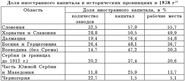 Доля иностранного капитала в регионах Югославии. Хотя сельское хозяйство в стране сохраняло свою значимость, в городе активно развивались новые отрасли промышленности и сектор услуг, а в банковском секторе усилилось влияние иностранных финансовых учреждений. Правительством были предприняты усилия по стабилизации динара, включая введение золотого стандарта, что опять же потребовало иностранных заимствований