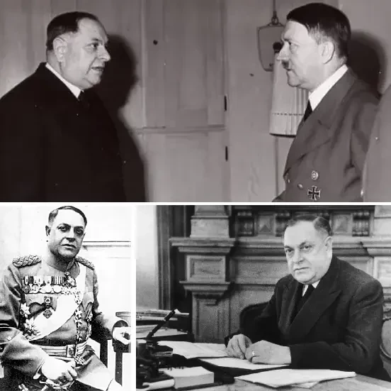 Министр иностранных дел Германии Иоахим фон Риббентроп и премьер-министр Югославии Драгише Цветкович подписывают Тройственное соглашение. 25 марта 1941 года, по решению Королевского совета, премьер-министр Драгиша Цветкович и министр иностранных дел Александр Цинцар-Маркович подписали в венском замке Бельведер протокол о присоединении Югославии к Тройственному пакту держав Оси, а два дня спустя, 27 марта, группа офицеров совершила военный переворот, свергла правительство, объявила короля Петра II совершеннолетним и передала ему власть