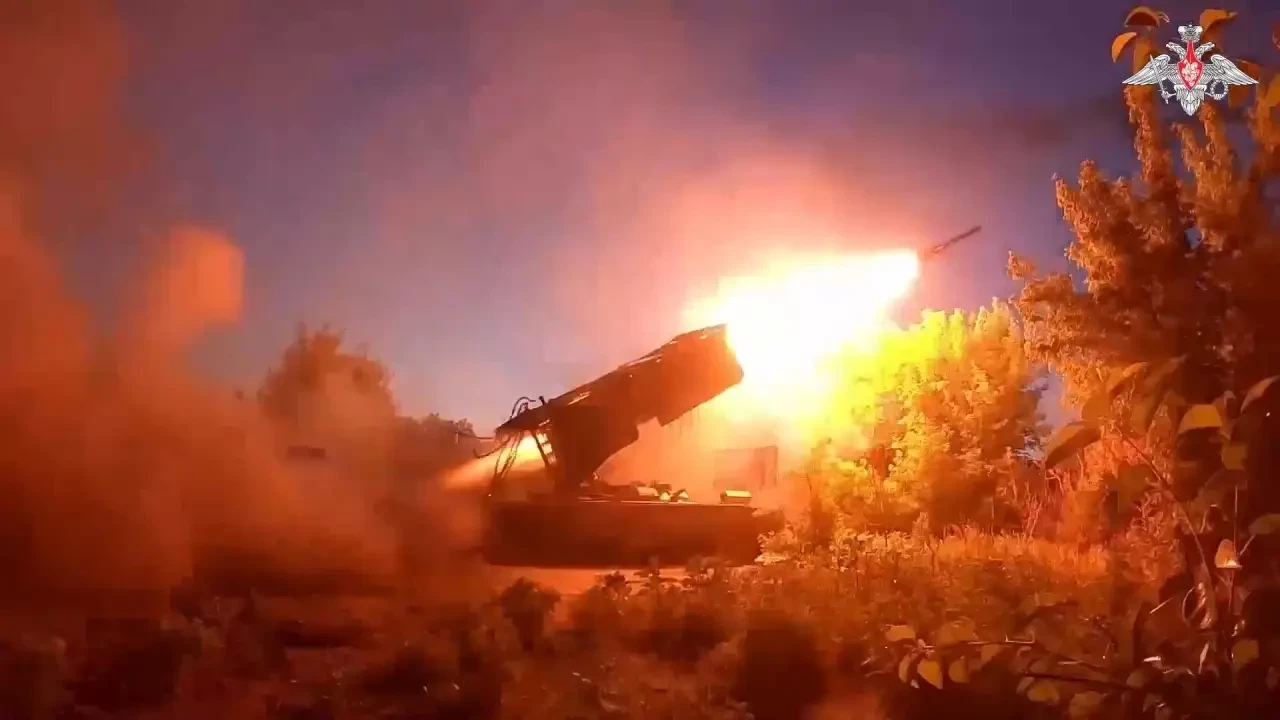 ТОС-1А ведёт стрельбу
