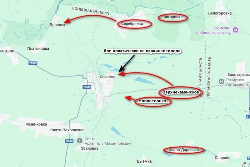 В последние дни российские войска на данном направлении активизировались, продолжая попытки охватить Северск с северного фланга от Серебрянки. Основное наступление, как и прежде, идет со стороны Верхнекаменского, где наши подразделения практически вышли на окраины города.