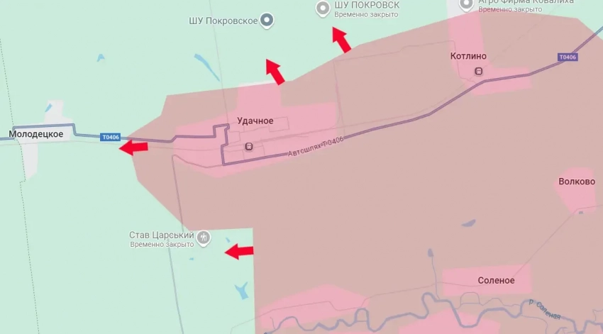 Таким образом, российские войска завершили взятие под контроль участка автомобильной дороги Котлино-Удачное к западу от Покровска. На данный момент ВС РФ подходят к селу Молодецкое. Это самое западное село ДНР на Покровском участке фронта. Сразу за Молодецким – Днепропетровская область.