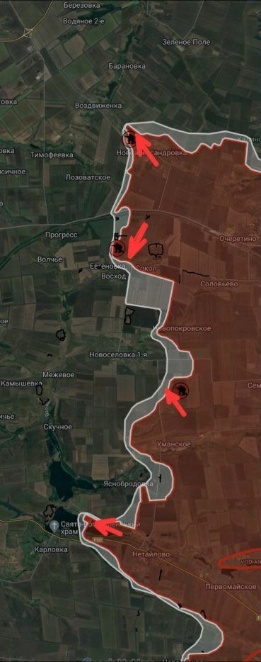 На Покровском направлении ВС РФ имеют тактические успехи возле Сокола, по направлению к Евгеновке, севернее Новосёловки Первой. Также российские войска давят у Карловского водохранилища, имеются тактические успехи в районе Невельского.