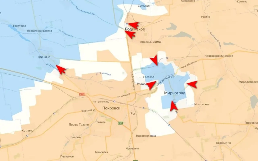 Российские войска практически выбили украинские формирования из Родинского и зашли в Гришино, фактически поставив крест на попытках ВСУ разблокировать окруженные в Мирнограде подразделения двух украинских бригад.
