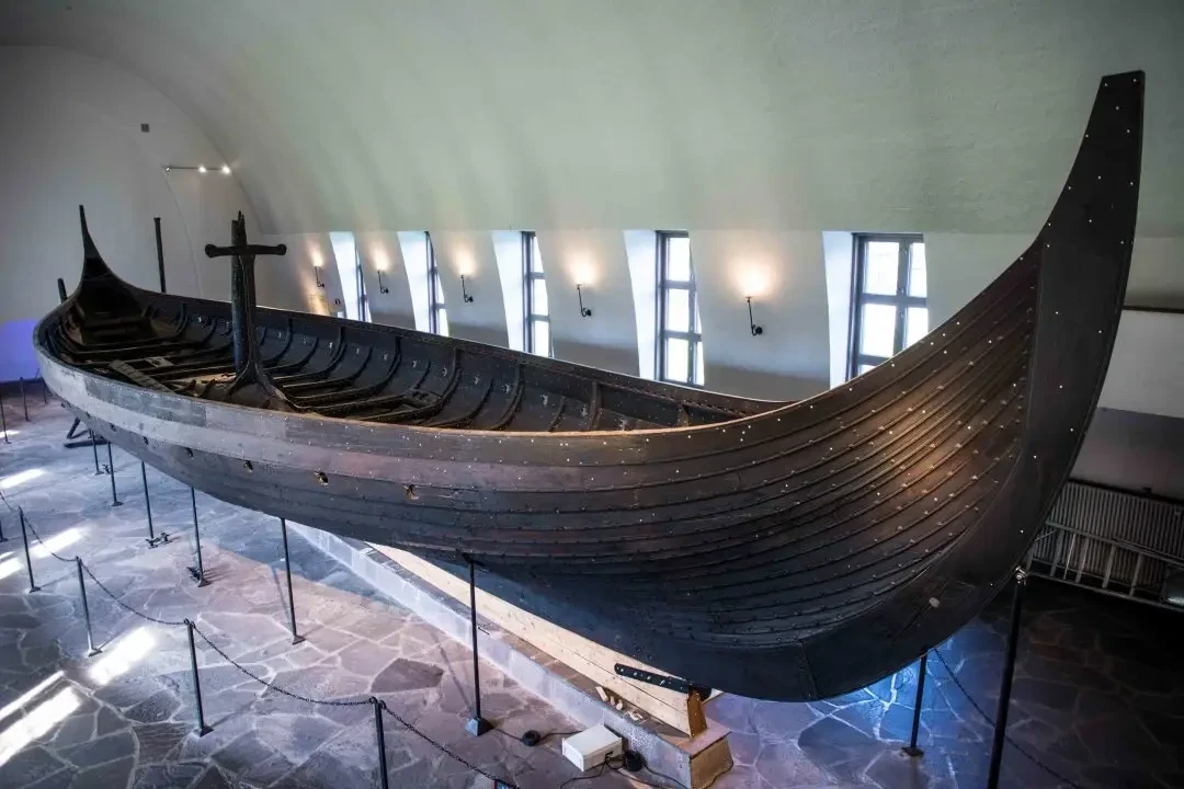 «Осебергский корабль» в новом здании Музея викингов, куда он переехал в конце ноября 2025 года. Фотография Музея викингов в Осло